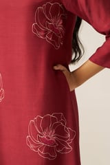 Tibetan Red Floral Print Kurta and Wide-Leg Pants Co-ord Set