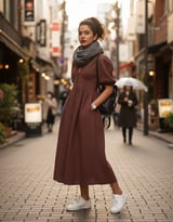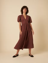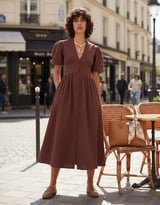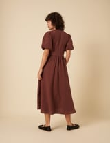 Chocolate Brown V-Neck Button-Front Midi Dress