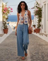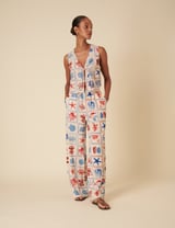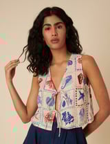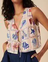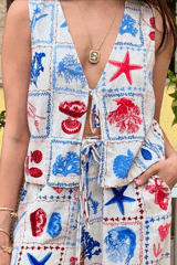 Multicolor Nautical Print Tie-Up Sleeveless Vest Top