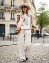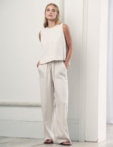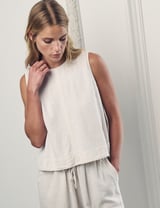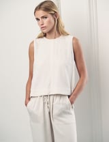 Cream Linen-Blend Sleeveless Round Neck Shell Top