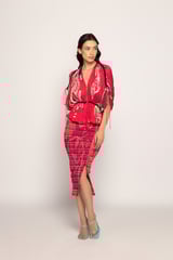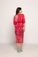 Marigold Stripe Print Smocked Skirt Pink Orange