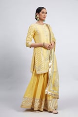 Eliza - Chanderi Silk Kurta And Garara Set With Organza Dupatta