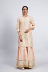 Eliza - Chanderi Silk Kurta And Garara Set With Organza Dupatta