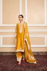 Glaze Mustard Embroidered Kurta Set with Salwar and Dupatta