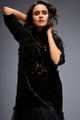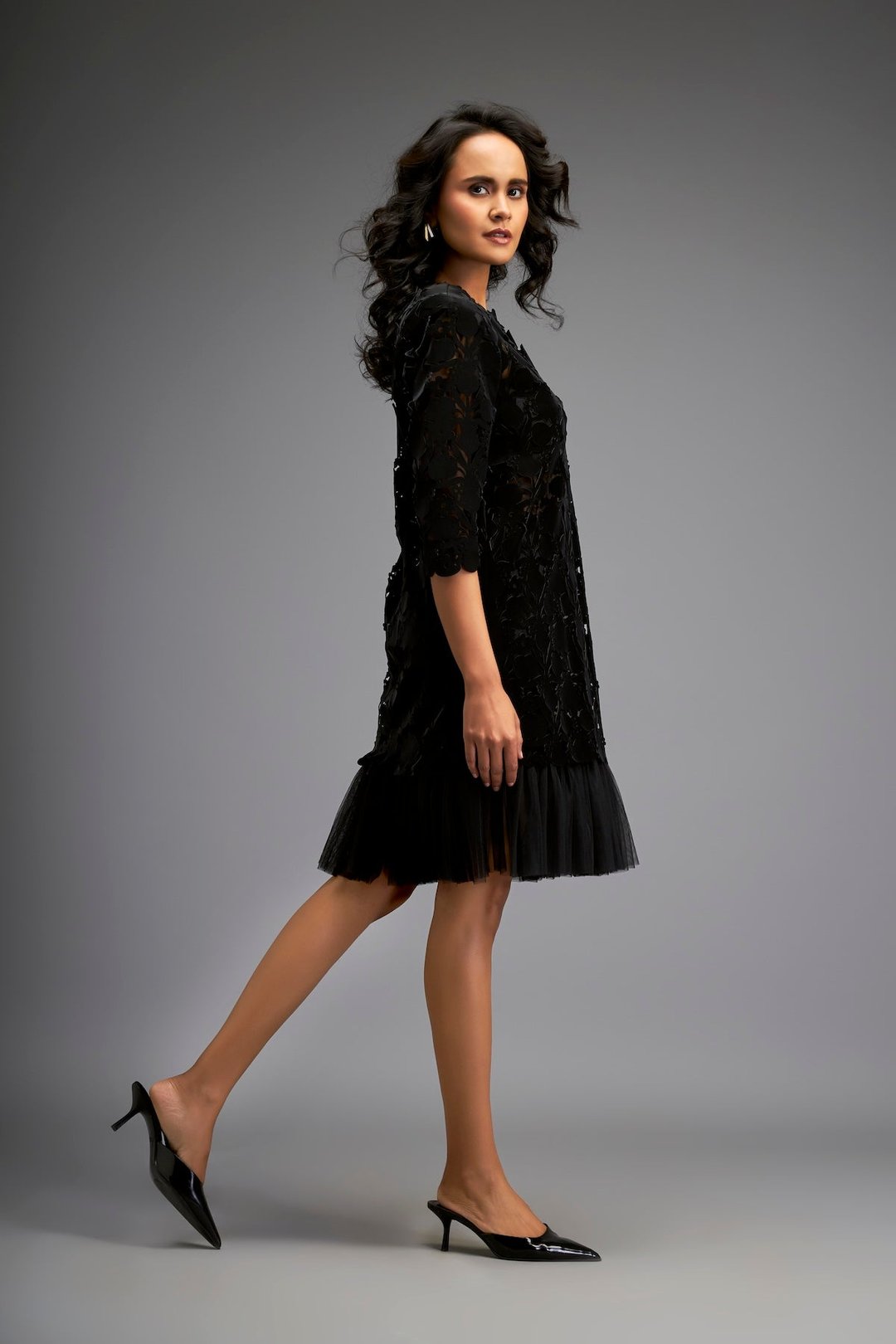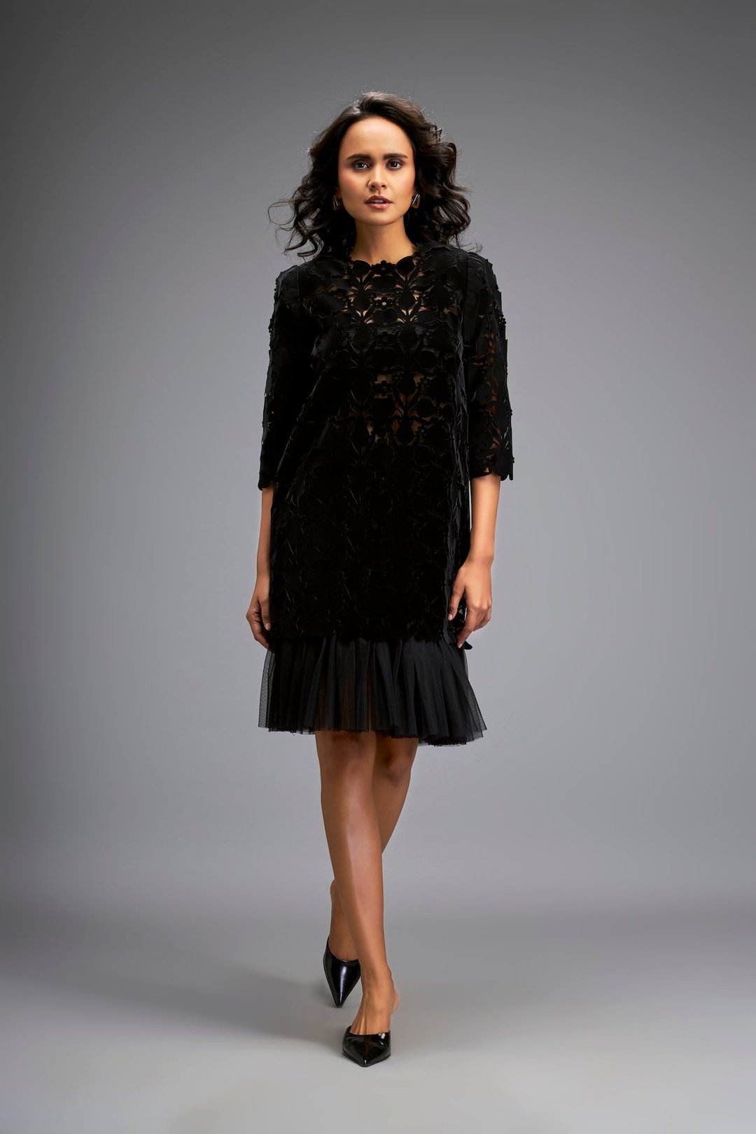 Floral-Cut Velvet Shift Dress with Sheer Hemline
