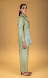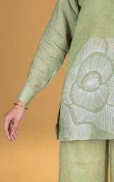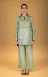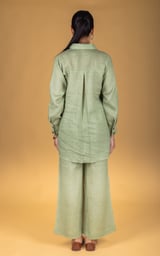 Green Linen Tunic and Wide-Leg Pants Co-ord Set