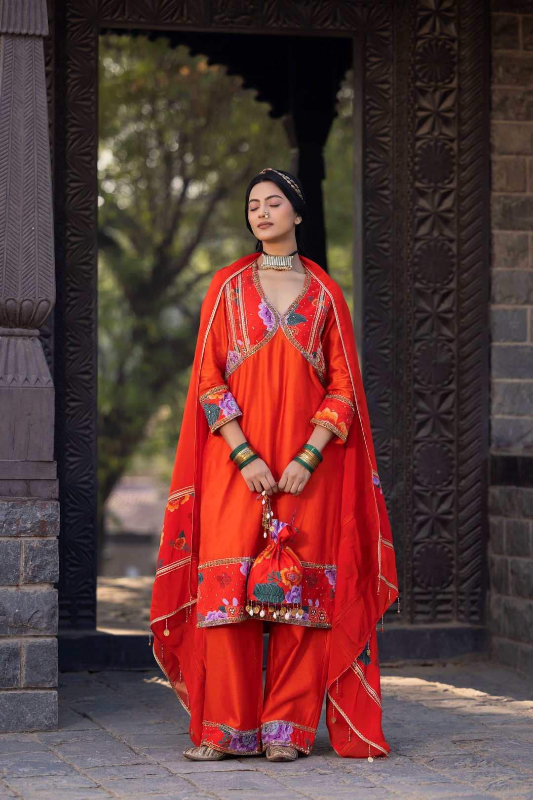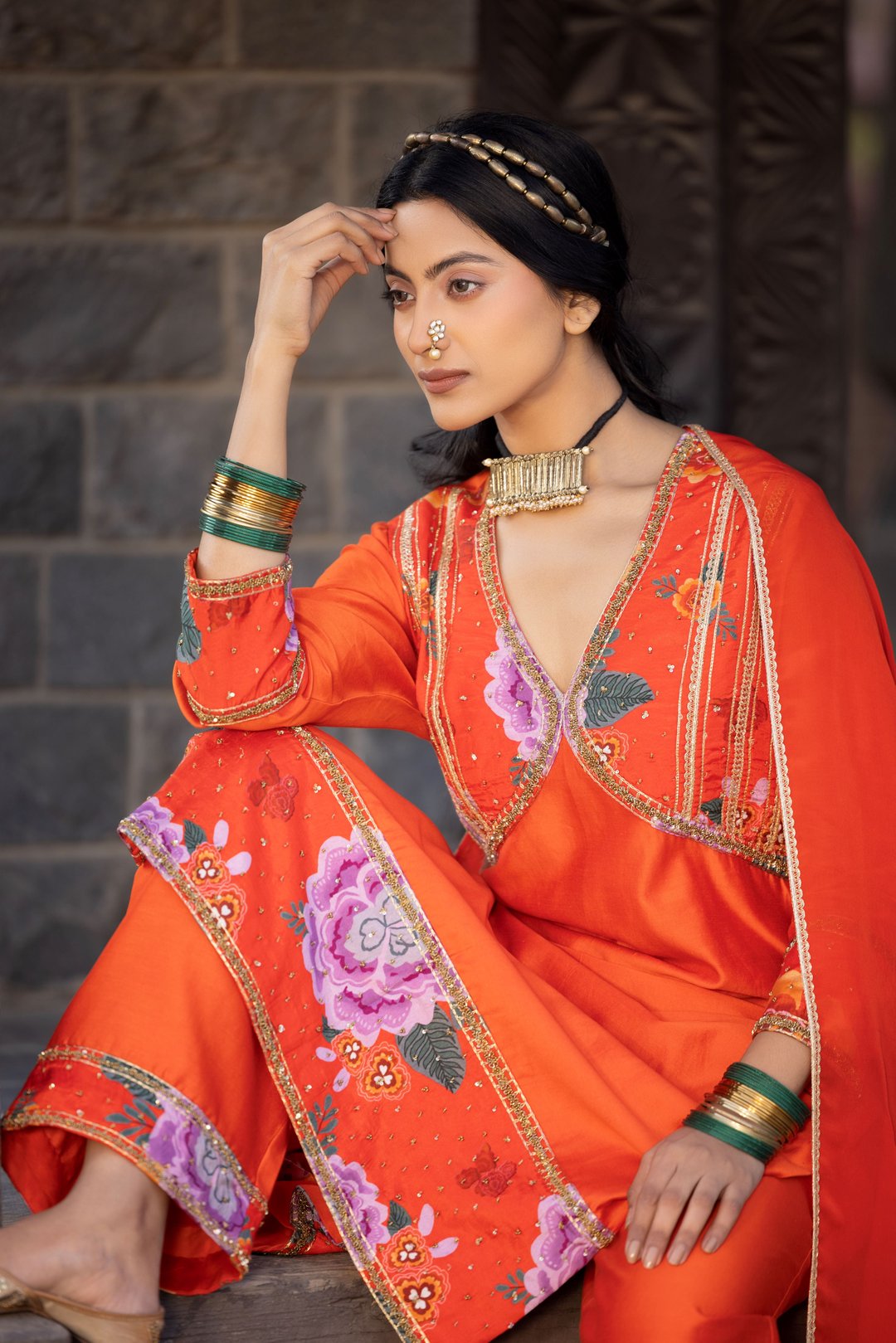 Orange Luxurious Chanderi Silk Suit