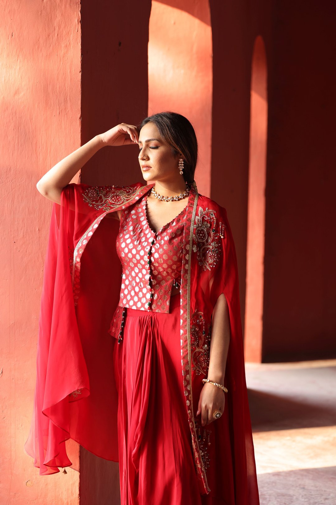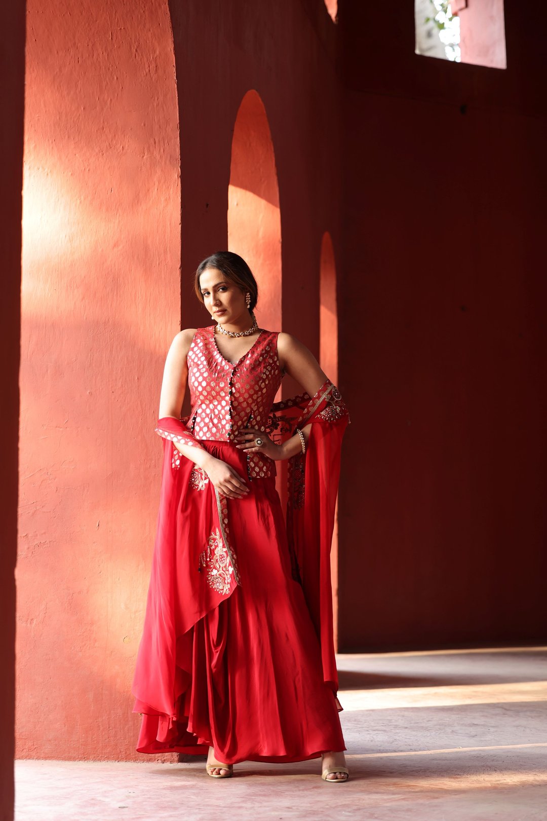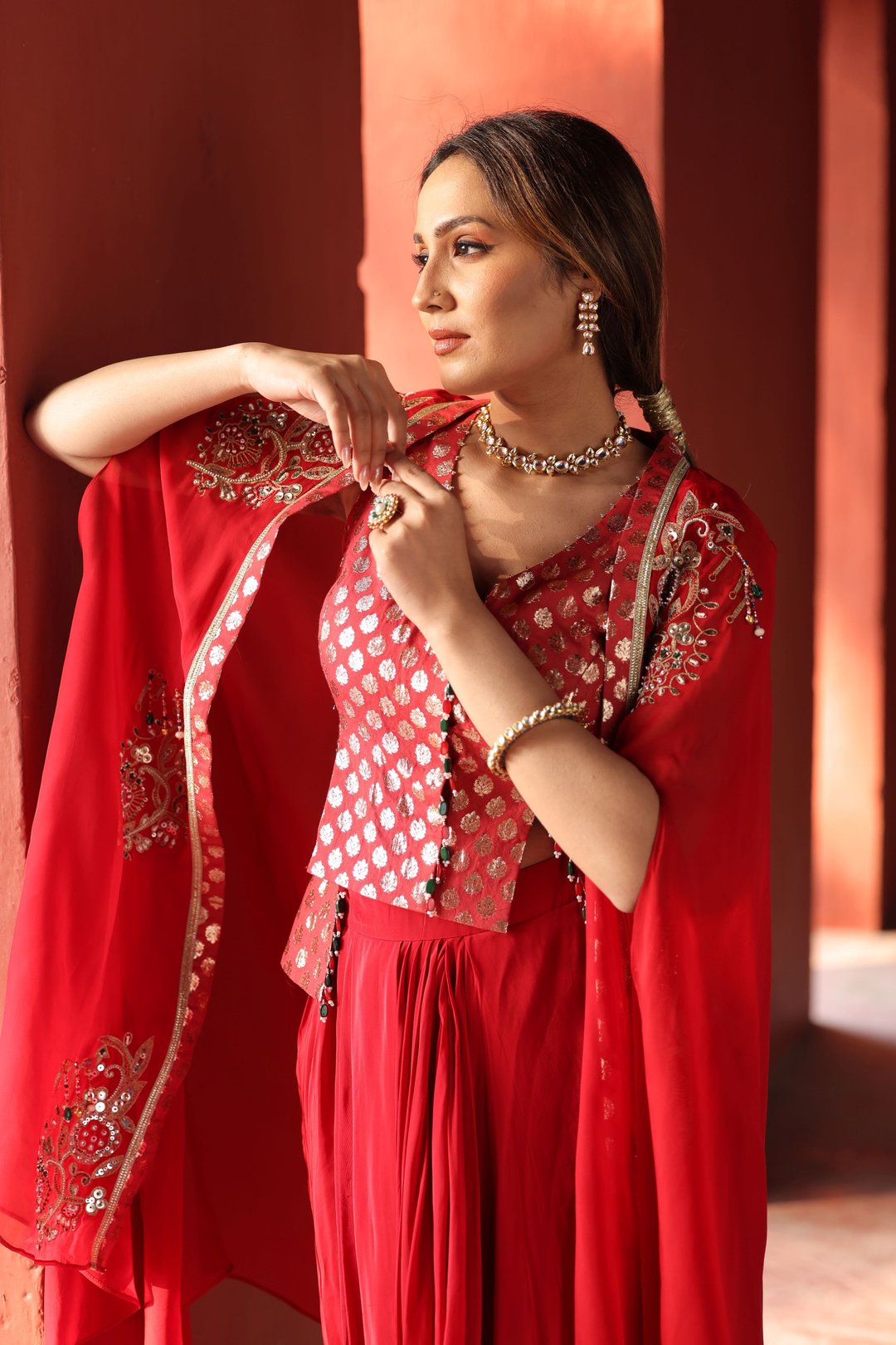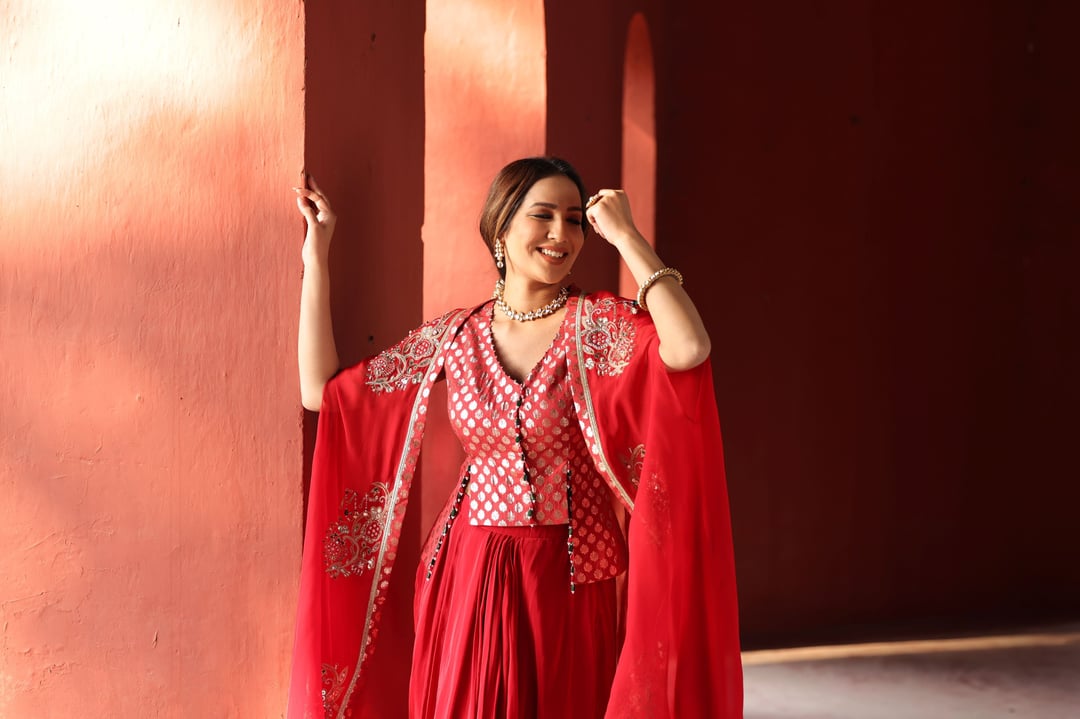 Red Chanderi Dhoti Set