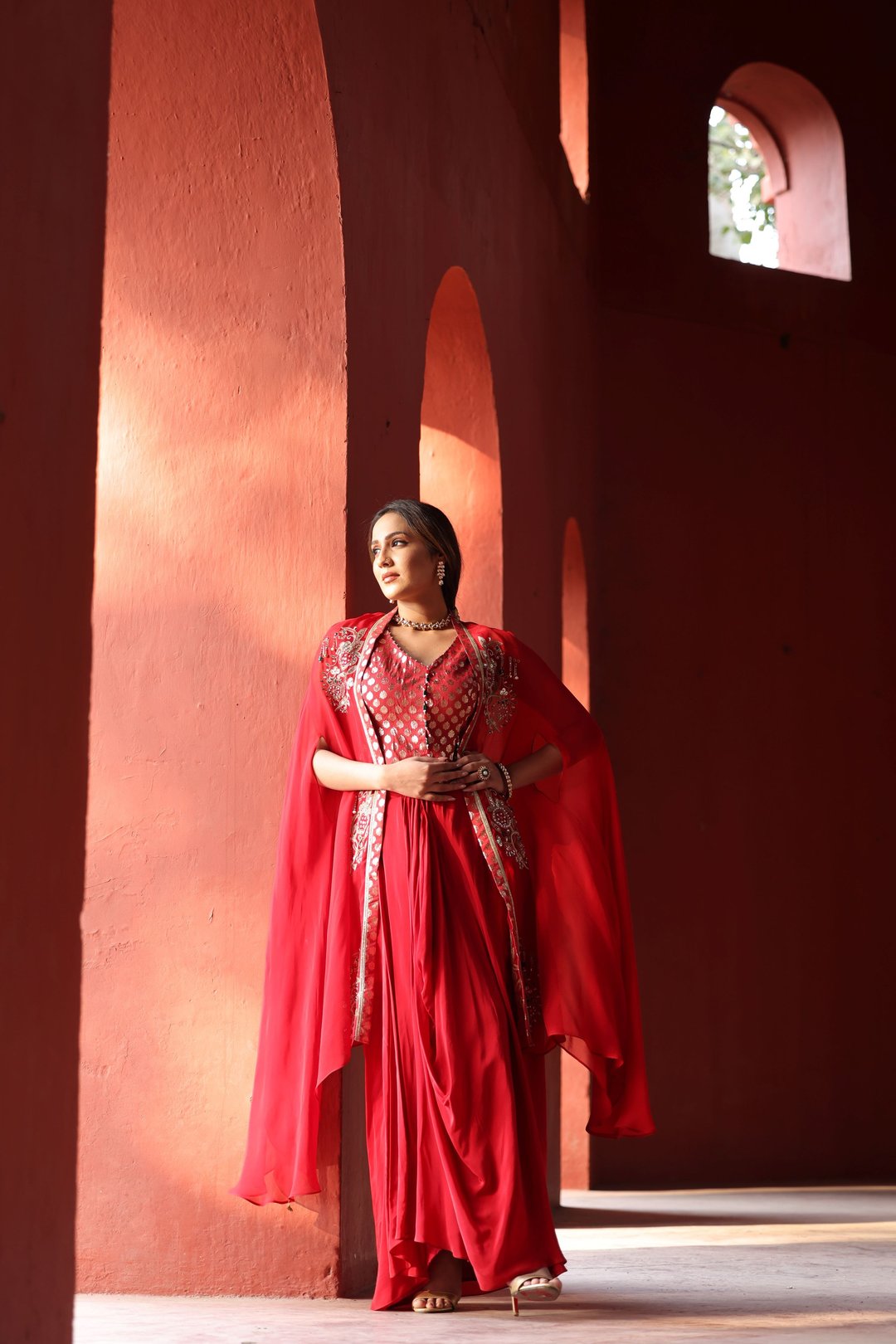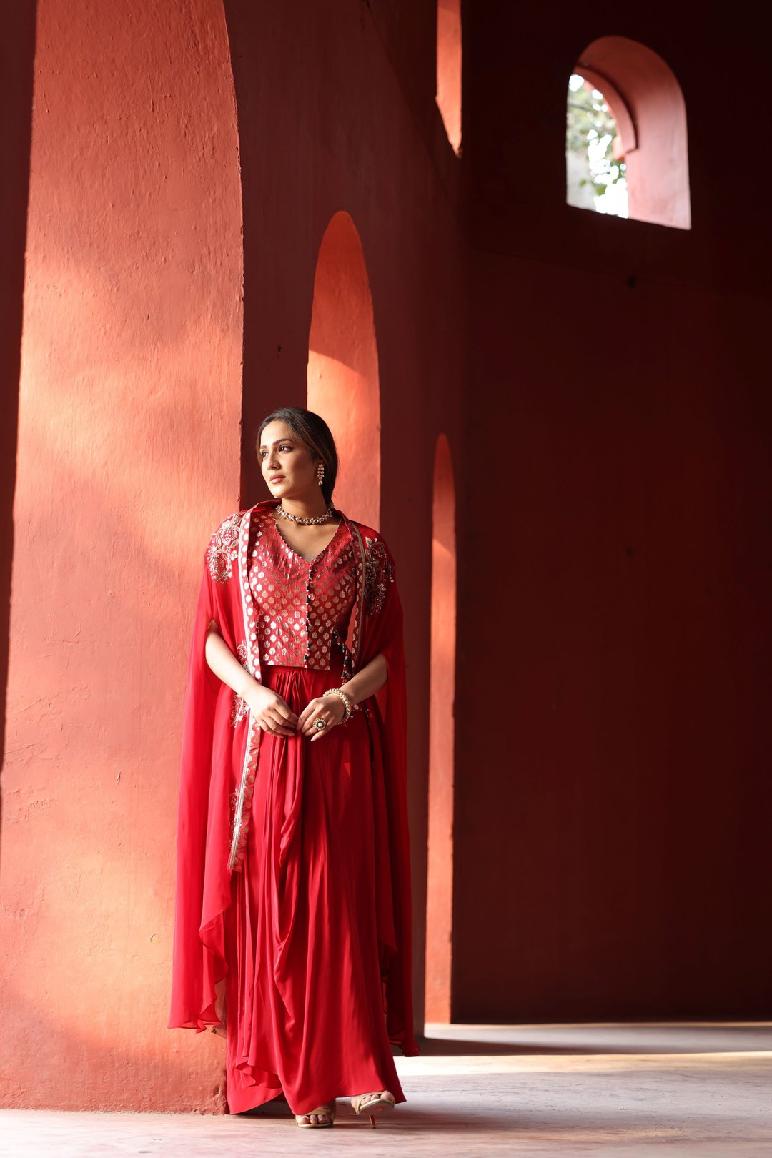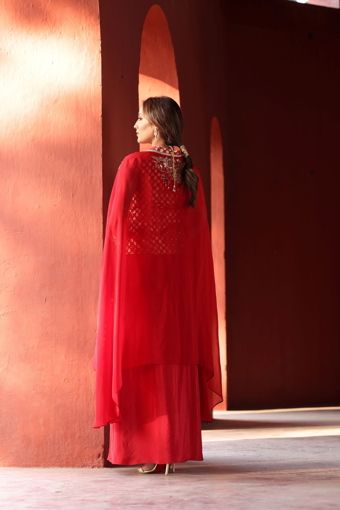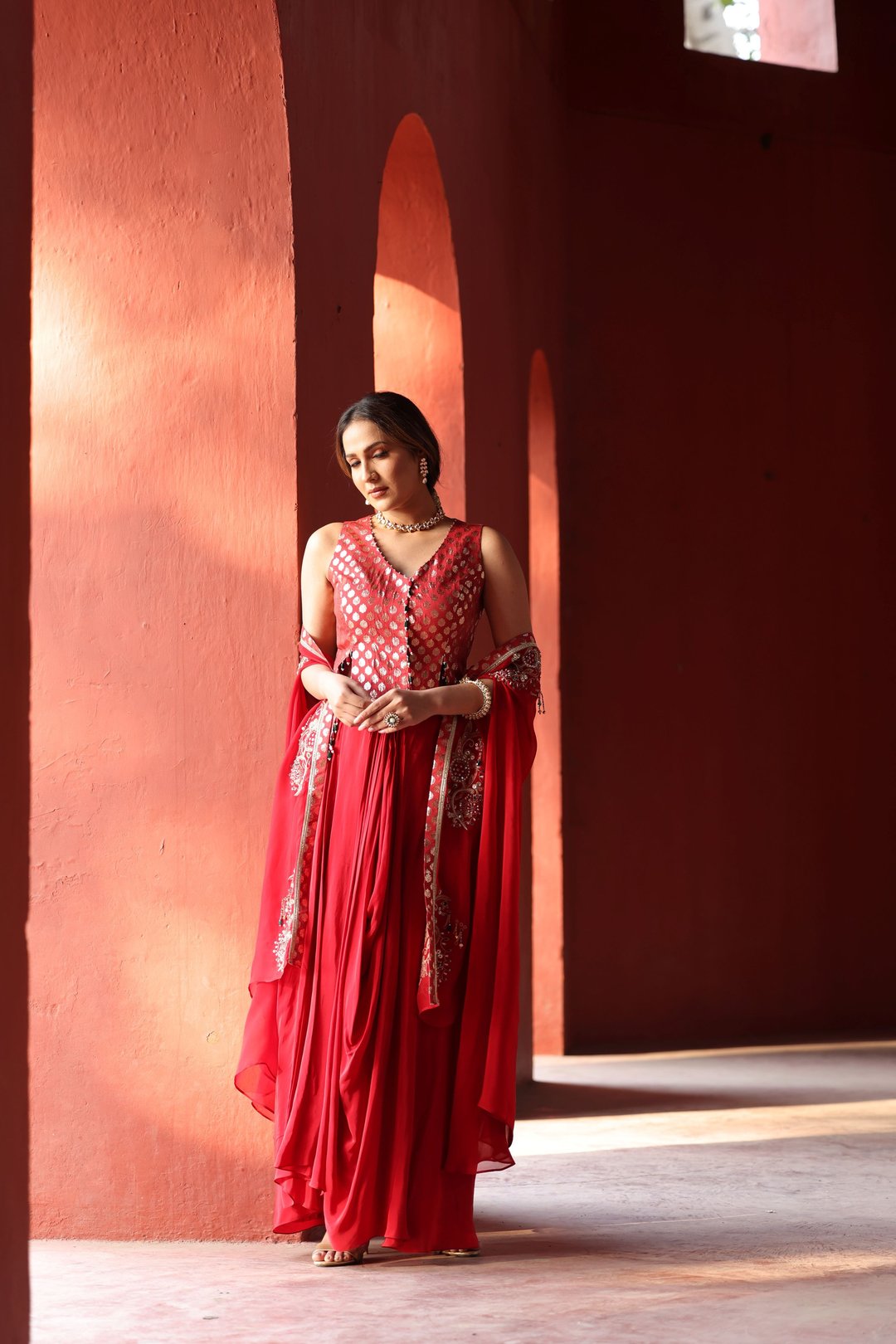 Red Chanderi Dhoti Set