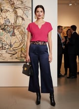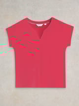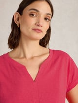 Bright Pink Notch V-Neck Cotton Jersey T-Shirt