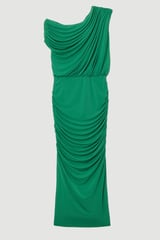 Jersey Crepe Asymmetric Neckline Maxi Dress