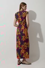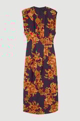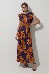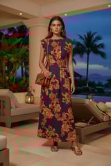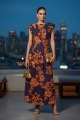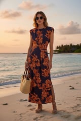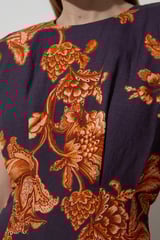 Navy Floral Linen-Blend Maxi Dress with Pintuck Waist
