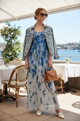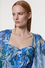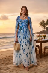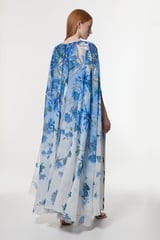 Scattered Floral Print Woven Pleated Cape Maxi Dress