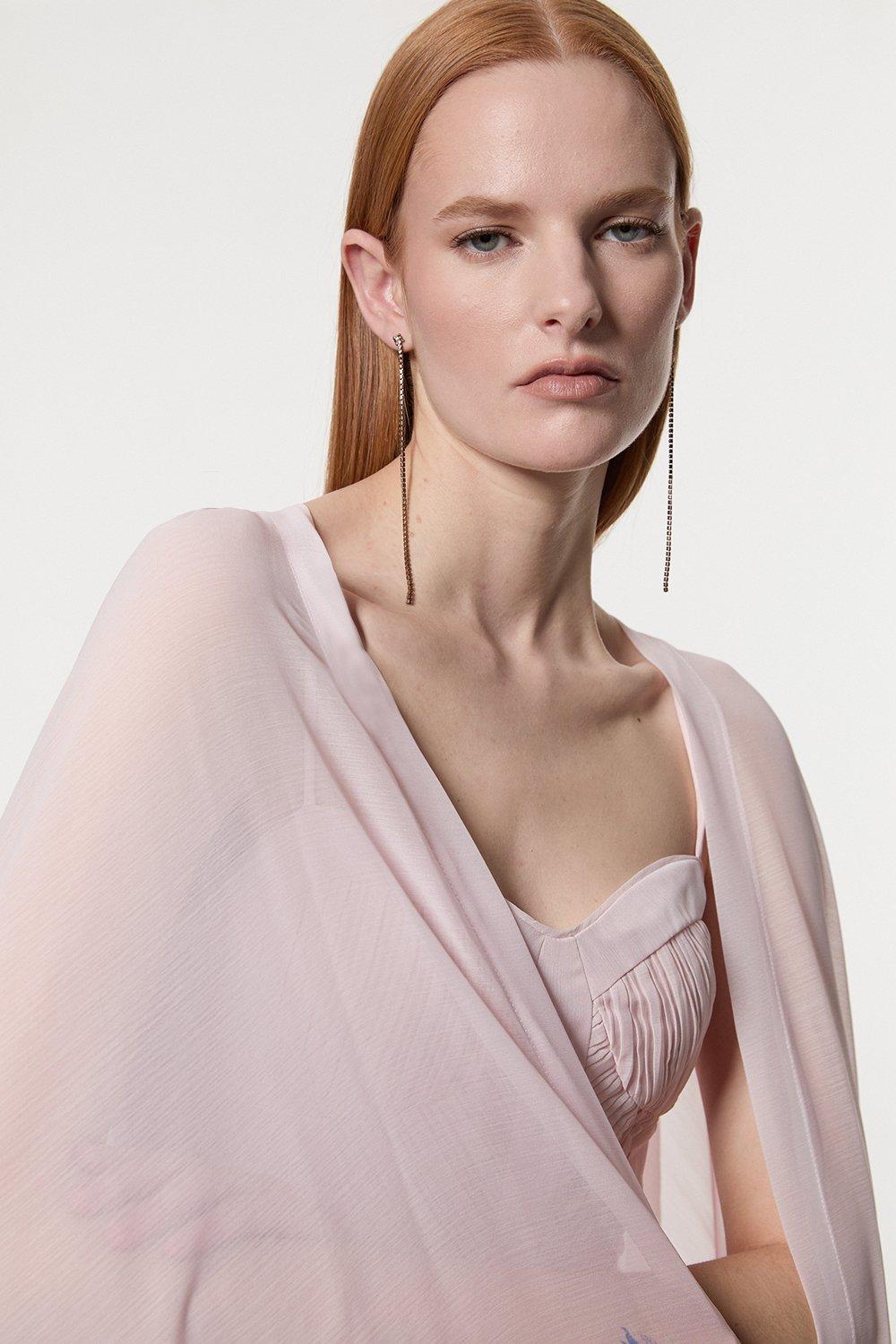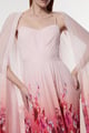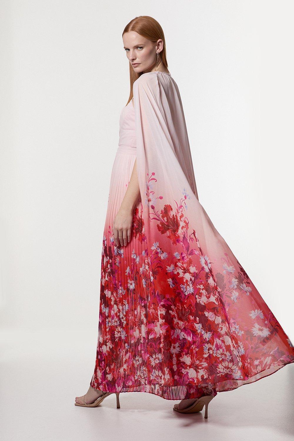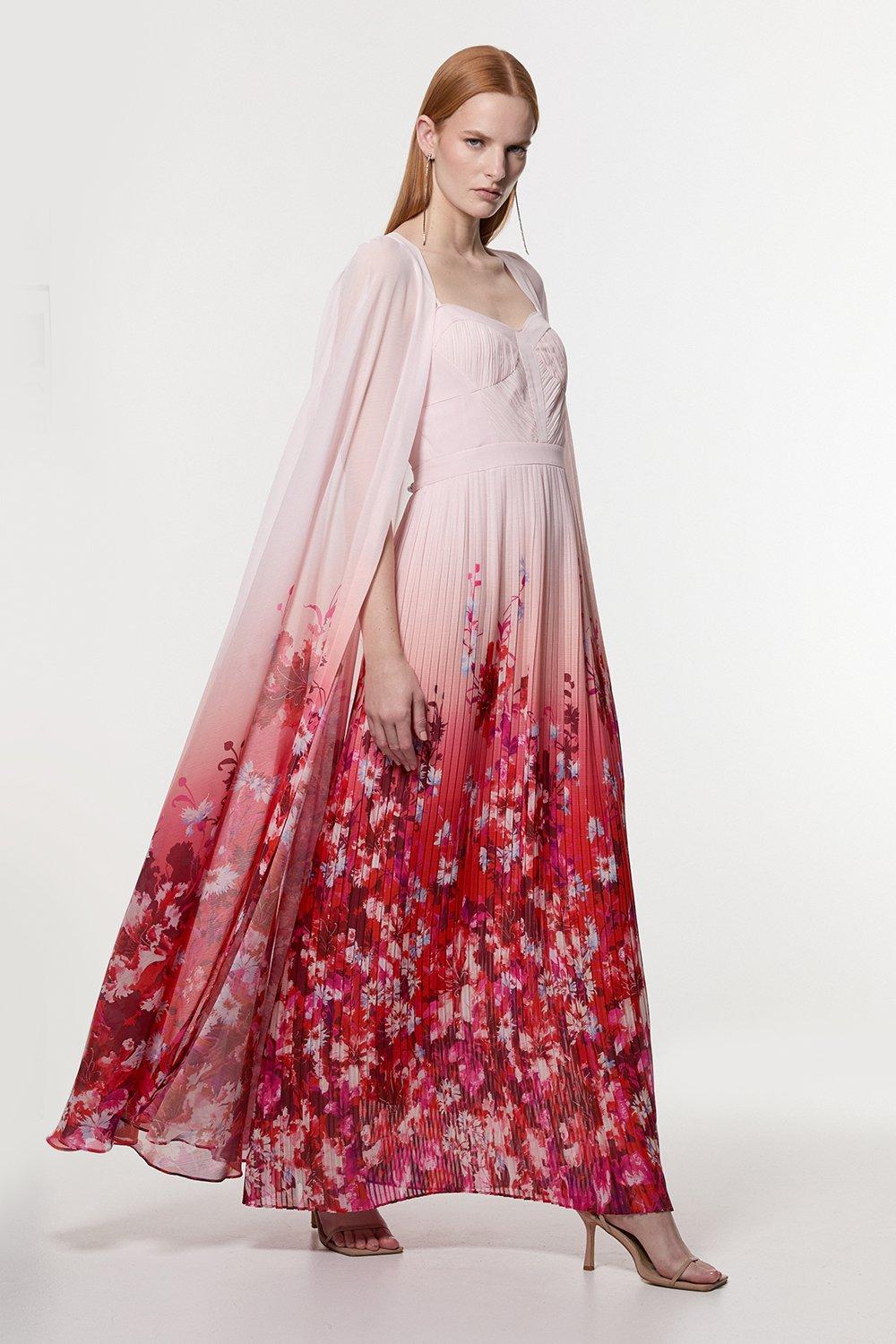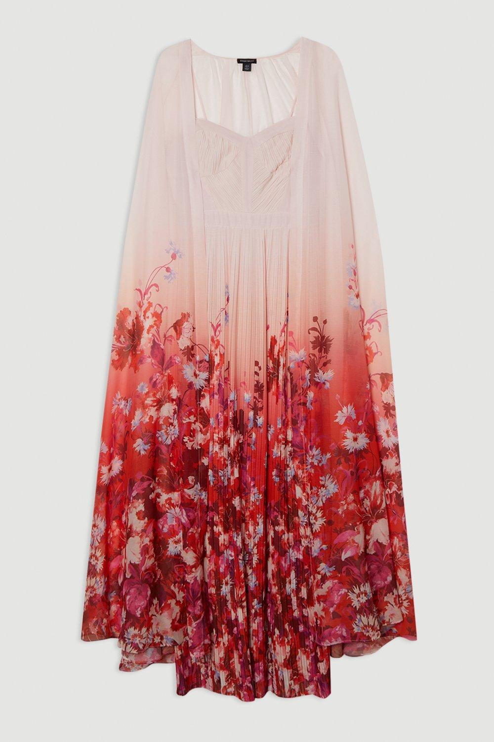 Scattered Floral Print Woven Pleated Cape Maxi Dress