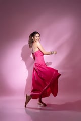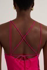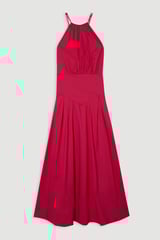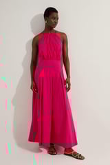 Hot Pink Cotton Halter Neck Midi Dress with Dropped Waist