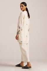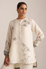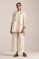 Ivory and Black Linen Tunic and Wide-Leg Pants Co-ord Set