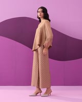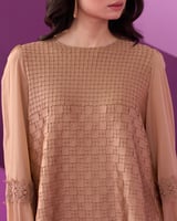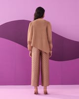 Beige Textured Co-ord Set with Asymmetric Hem Top
