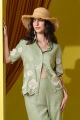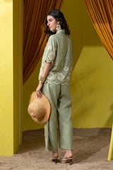 Sage Green Linen Embroidered Shirt and Pant Co-ord Set