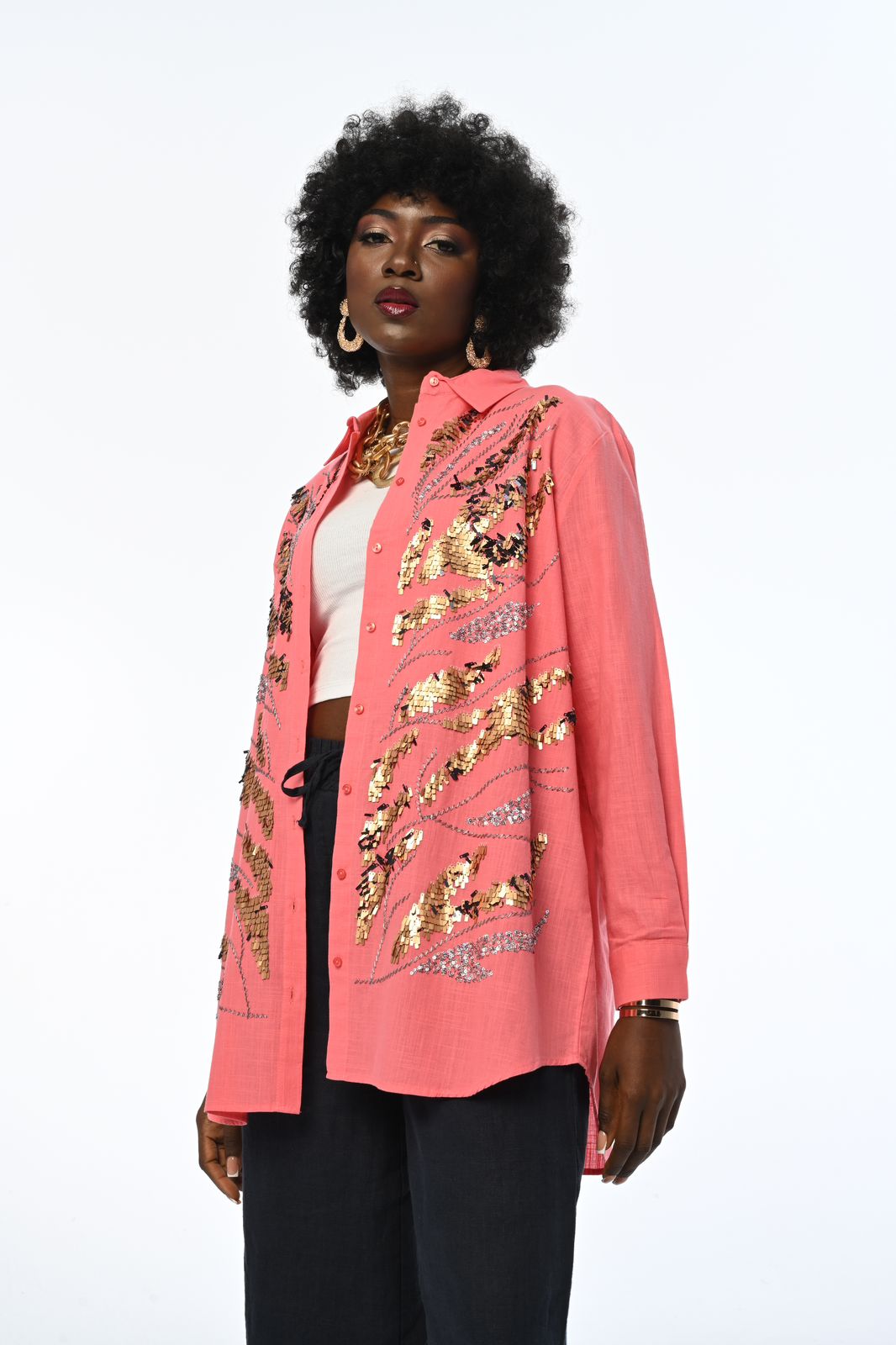 Peach Shirt with Golden Work