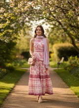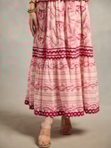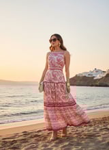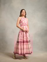 Pink Printed Halter Neck Tiered Maxi Dress
