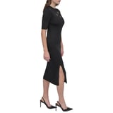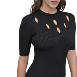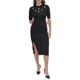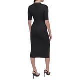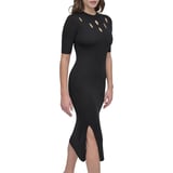 Black Rib-Knit Bodycon Midi Dress with Cut-Out Yoke