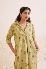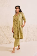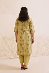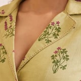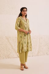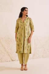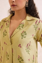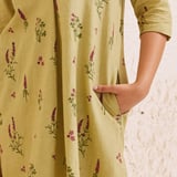 Sage Green Linen Cotton Hand Block Floral Print Kurta Set