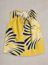 Mustard Yellow Abstract Print Tie-Up Neck Vest Top