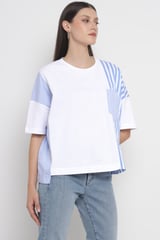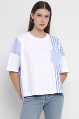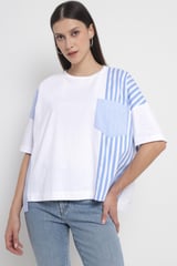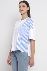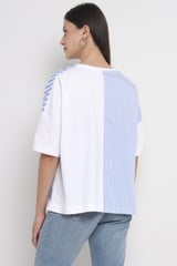 White/Light Blue Colorblock Oversized Stripe Panel Tee