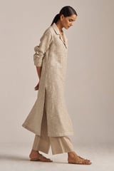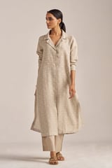 Undyed Natural Hand-Printed Kurta and Pant Co-ord Set
