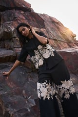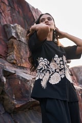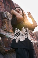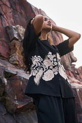 Placement Embroidered Shirt Black