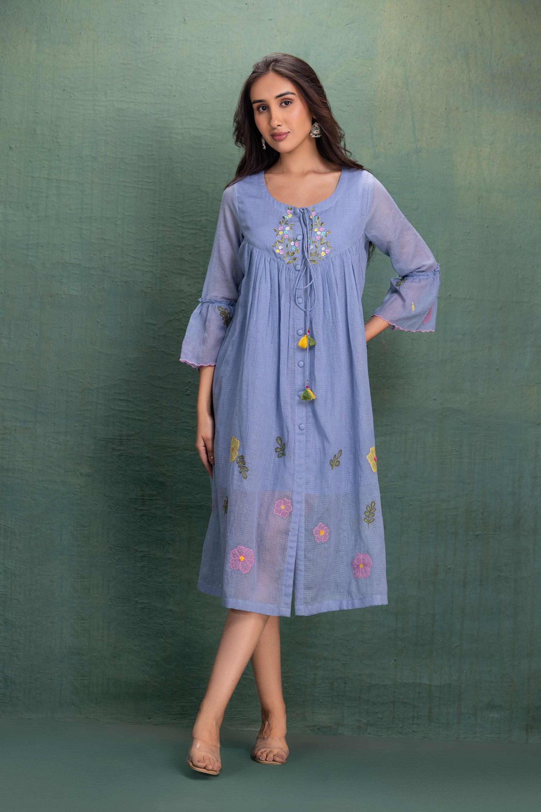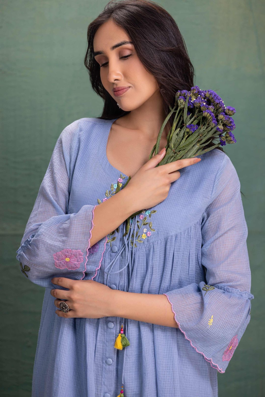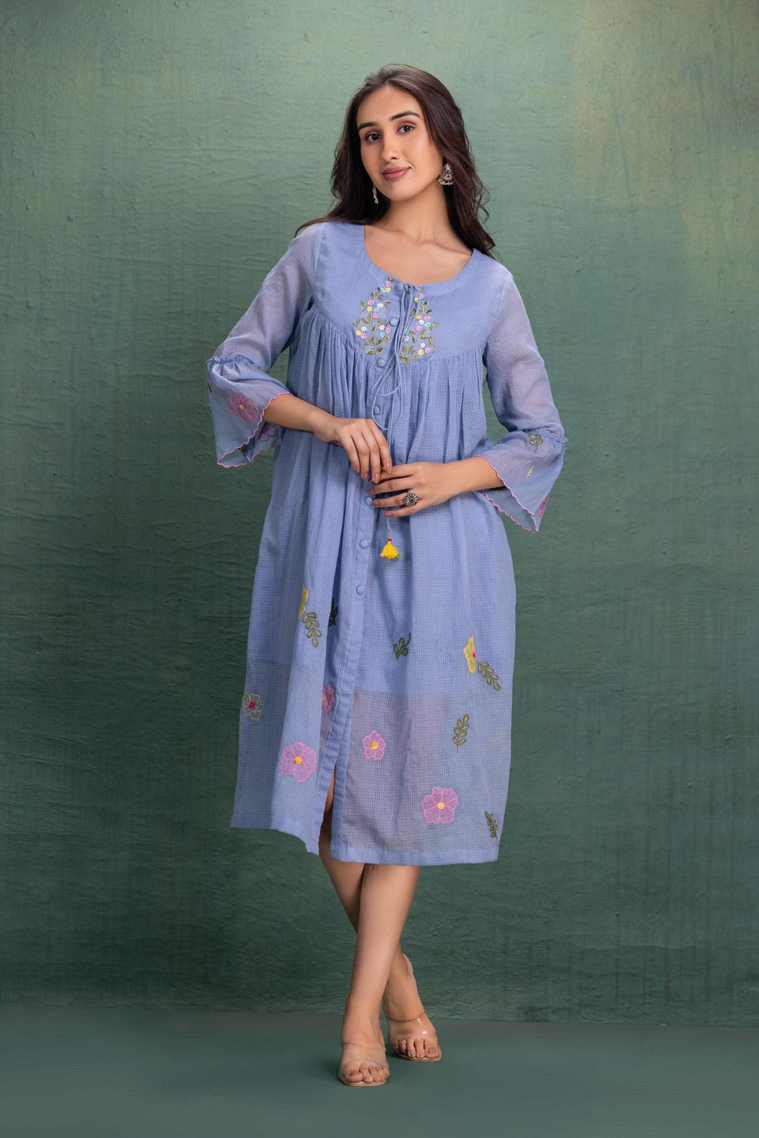 Blue Machine Embroidery Coord Set