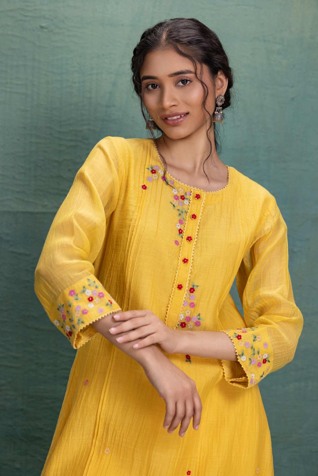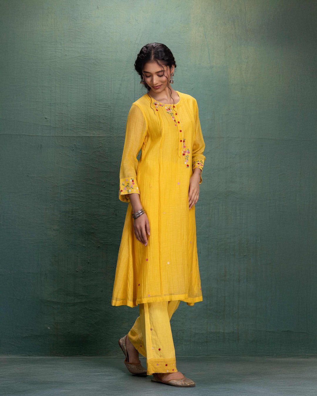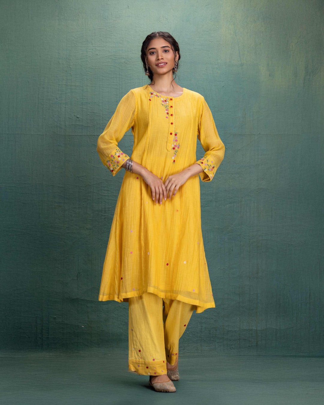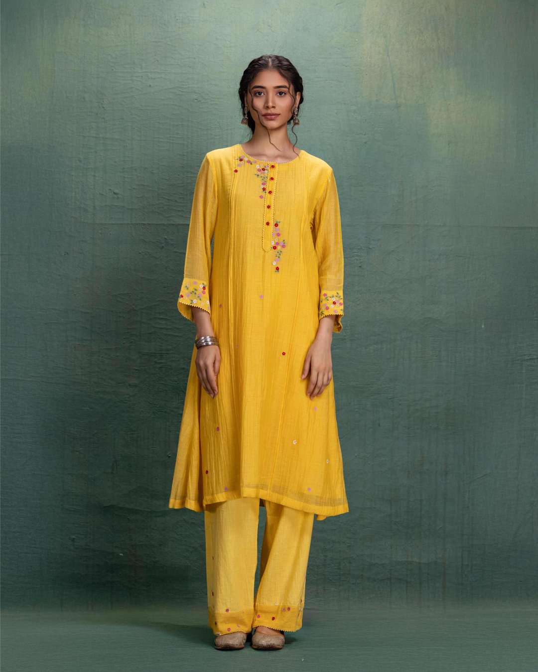 Yellow Machine Embroidery Co-Ord Set