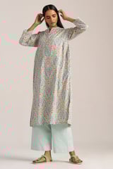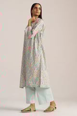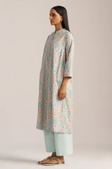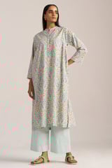 Aqua Foam Printed Cotton Kurta and Wide-Leg Pants Co-ord Set