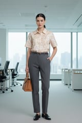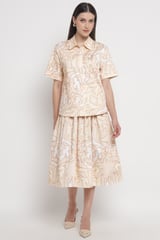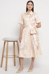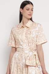 Beige Geometric Print Relaxed Fit Short Sleeve Shirt