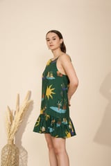 Green Tropical Print Halter Neck Mini Dress