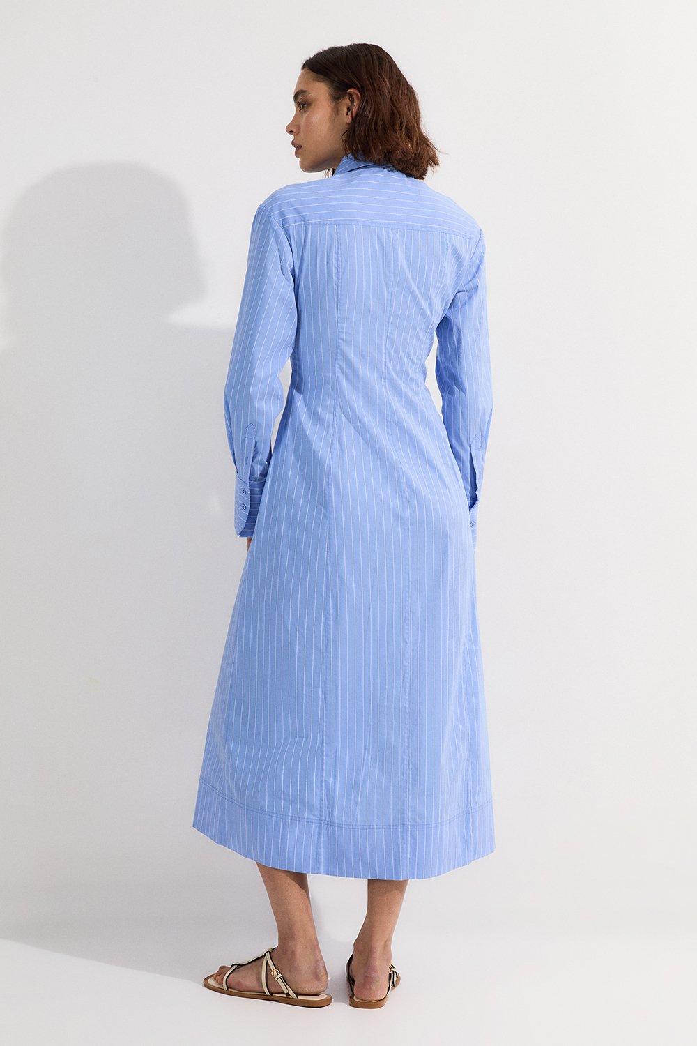 Stripe Cotton Rosette Woven Shirt Maxi Dress