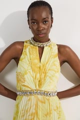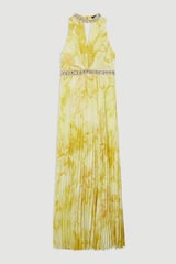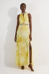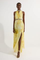 Abstract Floral Crystal Embellished Woven Split Maxi Dress