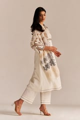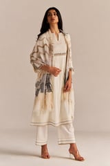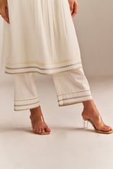 Ivory A-Line Kurta Set With Pintuck Yoke and Embroidery