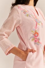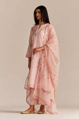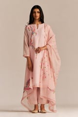 Primrose Pink Floral Embroidered Kurta Set with Dupatta