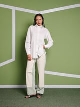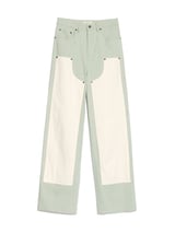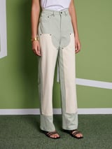 Green High-Rise Straight-Leg Colorblock Trousers