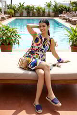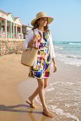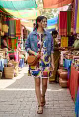 Multicolor Graphic Print Mini Dress with Side Drawstrings