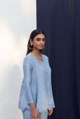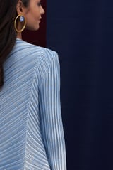 Powder Blue Metallic Pleated Co-ord Set with Culottes