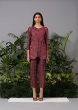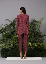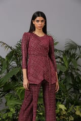 Red Metallic Pleated Co-ord Set with Belt