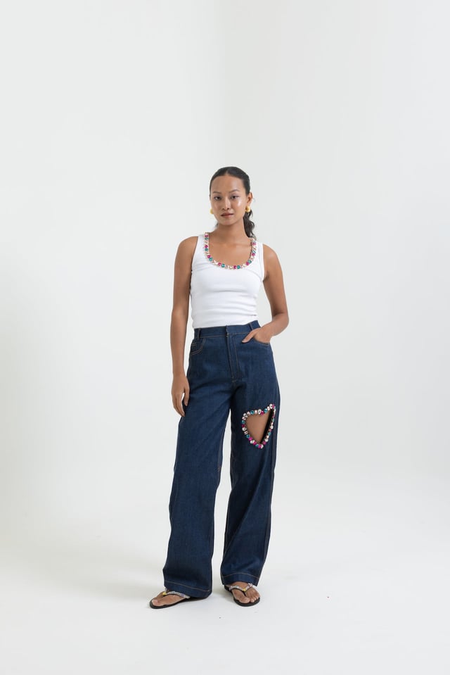Gem Heart Denim Pants