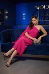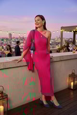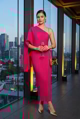 Fuchsia One-Shoulder Pleated Maxi Dress with Drape Panel