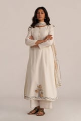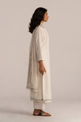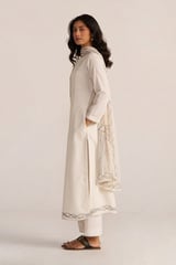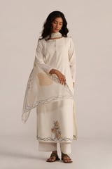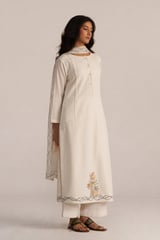 Off White Cotton Straight Kurta Set with Chiffon Dupatta
