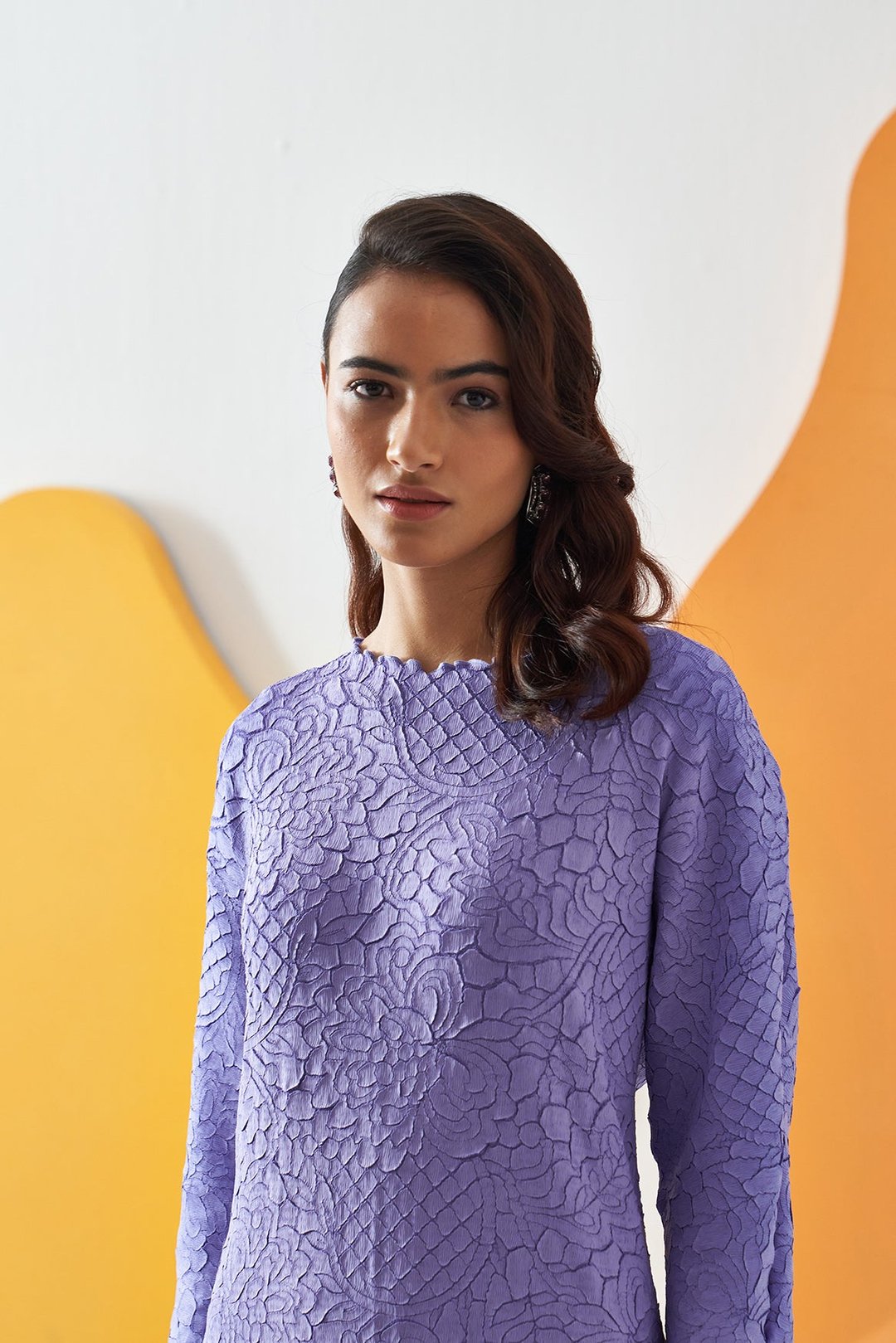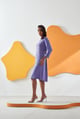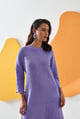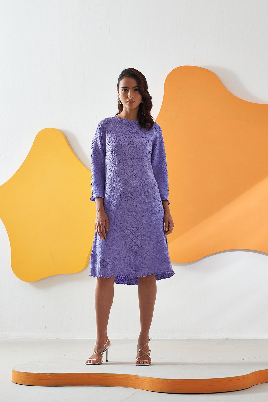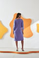 Purple Textured Midi Shift Dress with 3/4 Sleeves