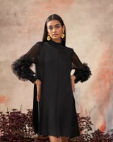Flower Sleeves Pleat Dress