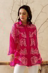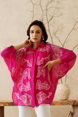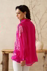 Magenta Organza Embroidered Button-Down Shirt