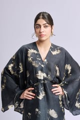 Nicola Black And Gold Flower Print Dress with Flowy Sleeves
